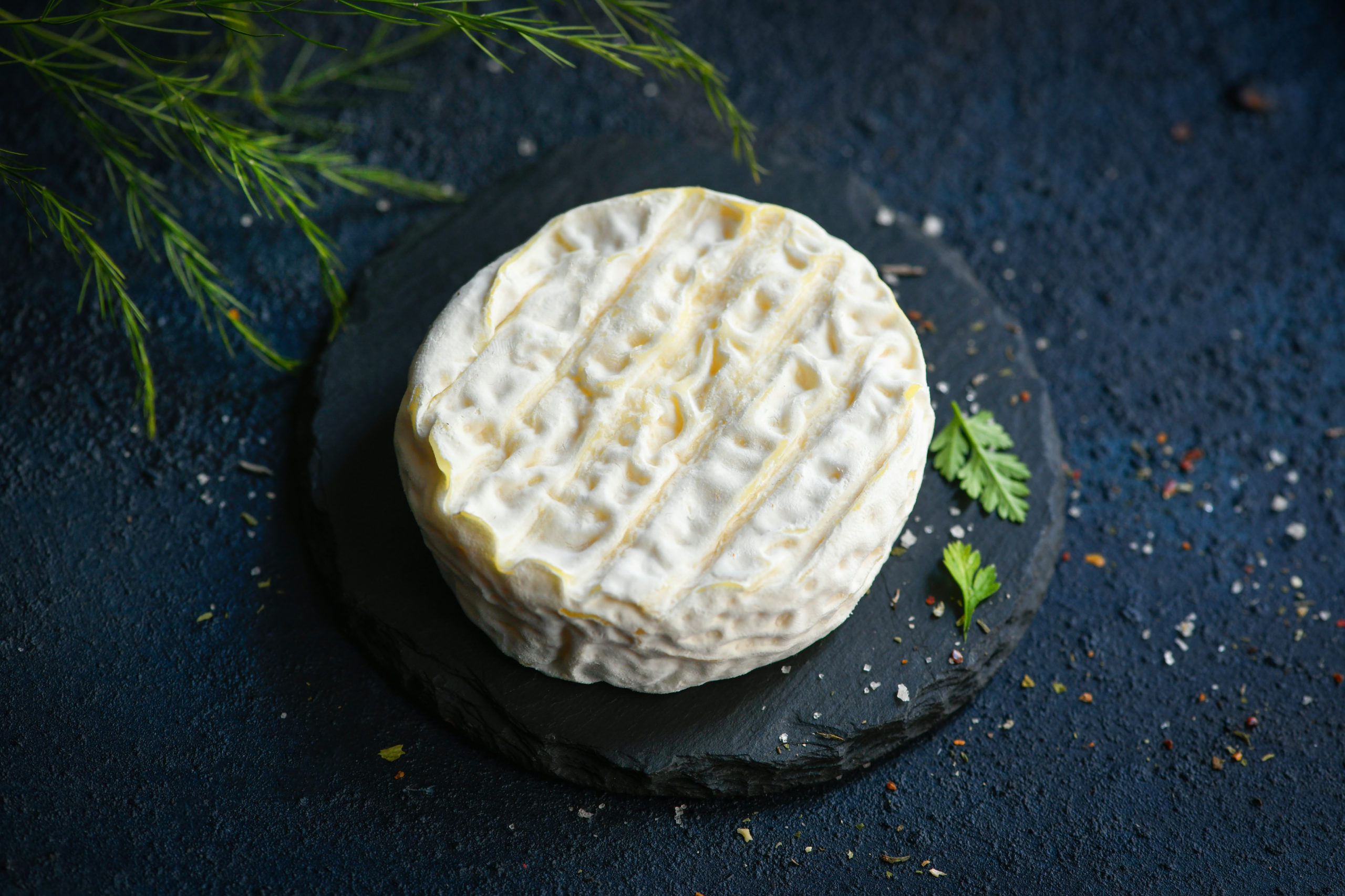 Un Pélardon AOP est posé sur une assiette ronde en ardoise