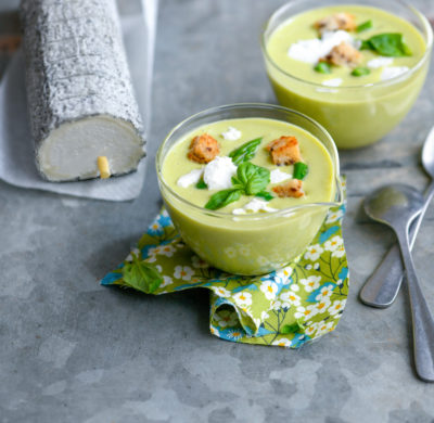 Velouté frais d’asperges au Sainte Maure de Touraine AOP & basilic