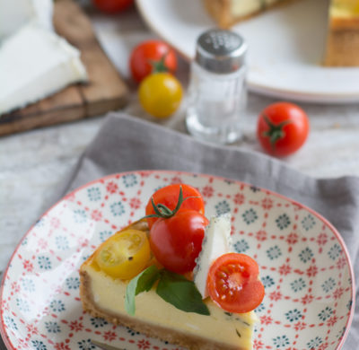 Cheesecake salé au Valençay, tomates cerises et basilic