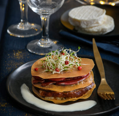 Mille-feuille de magrets aux cèpes et Rocamadour AOP